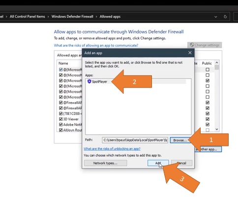 How to add SpotPlayer as trusted App in windows