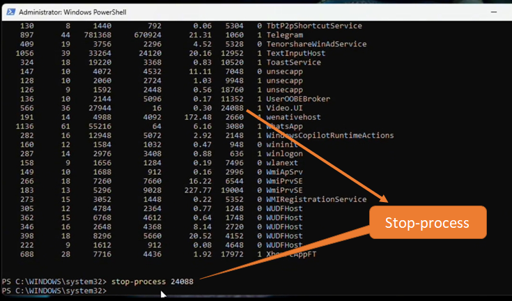 Enter get-process to see all open applications on your system.