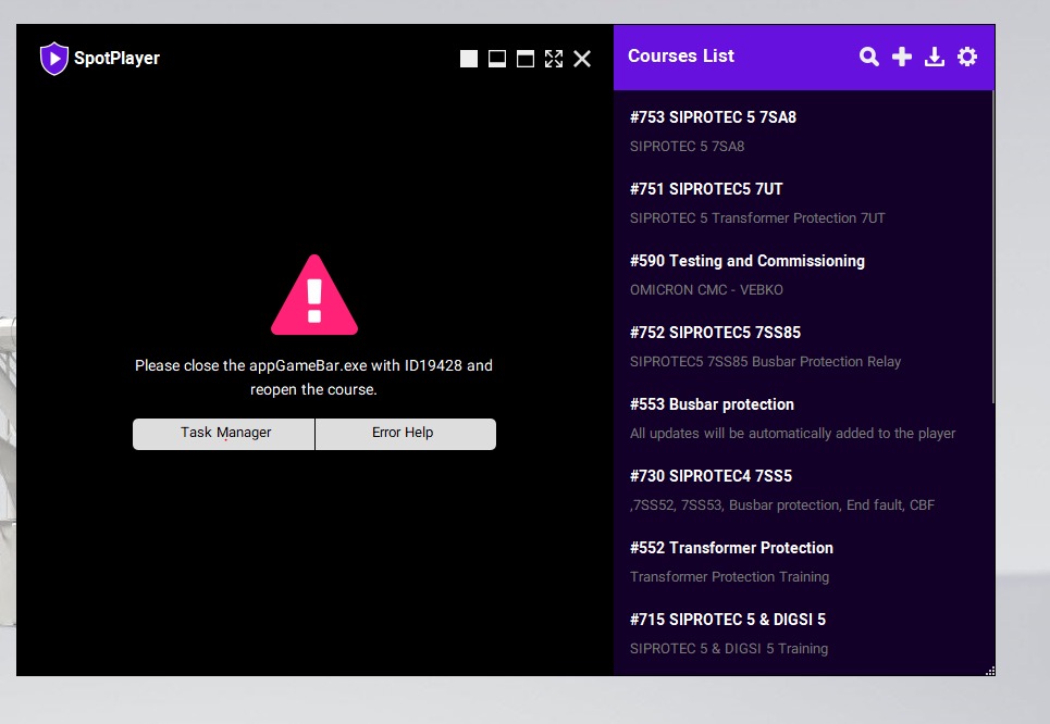 The SpotPlayer may not open certain content if Ocam, AnyDesk, Game Bar, or any screen recorder is running. Please close these applications, then reopen the course. If you still encounter errors, you can quit these apps using any of the methods below: